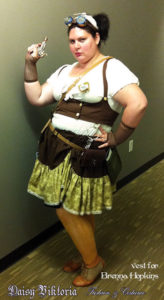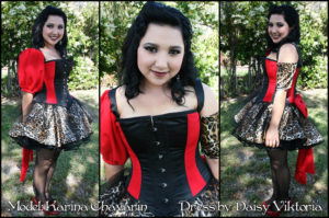 “Hello Daisy, You can definitely rest assured that you’ve gained another life-long customer and fashionista! I received your stunning vest today and the intricate details, the incredible and PERFECT measuring and tailored work of the material and fabric, as a plus size curvy and huge breasted fetish and cosplay model even in my waist size it’s rare that people can actually leave enough room for the “twins” lol I’m beyond floored that this beautiful vest fits like a latex glove and I can’t wait to wear it at my “Steampunk Oz” Halloween Bash for my local troupe’s group of sexy ladies to perform at, Thank you so much and I hope many and more curvy girls order from you, they surely won’t be disappointed! Love, Bella BloodLust Red Skye World Comic’s ONLY Curvy Vixen :)” – Bella BloodLust, CA, US (underbust vest)