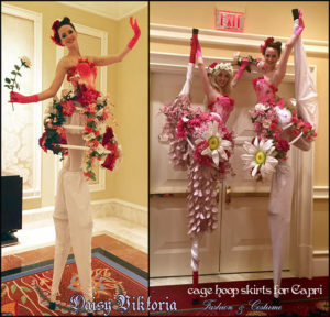 “The skirts are working great! We actually just added some floral on them for some of our stilt walkers. 🙂 I’ve attached a photo so you can see what we did. Thank you!” – Capri, Las Vegas, USA (cage hoop skirts)