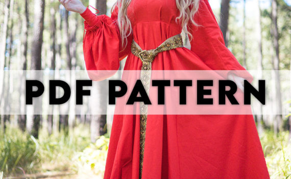 ****THIS IS NOT A PHYSICAL OBJECT!! YOU WILL RECEIVE A PDF PATTERN & TUTORIAL FILE.*** Medieval Fantasy Gown / Princess Buttercup's Red Dress - PDF Pattern This is a pattern & tutorial, with instructions to sew your very own medieval fantasy gown inspired by Princess Buttercup. This is a basic pattern and tutorial. Absolutely perfect for costumes, bridal and gowns, cosplay, and fantasy fashion projects! This listing is for a Pattern and Sewing Tutorial that includes directions to create a dress. This pattern fits approximately a 26-27” (66-68.5 cm) waist, and the final length from shoulder to hem is approximately 57” (145 cm). The tutorial includes basic notes on how to adjust the size. This PDF pattern can be printed on both US Letter or A4 paper. There is also a single page file you can use with a projector. In your download you will receive: + Pattern formatted for US Letter paper + Pattern formatted for A4 paper + Single page full size file for use with a projector + 17 Page Tutorial Book (with photographic instructions and suggested suppliers) Materials Needed: 6 yd (or meter) fabric* 46 grommets size 00 + grommet tool 3 yd (or meter) plaid / checked ribbon 8 yd (or meter) lacing ribbon (I used 1/8” satin) Sewing machine Hand sewing needle Matching thread *Please note that you may require additional yardage for extra tall dresses. This pattern was drafted for a height of 5'4” (162.5 cm) with bust 35-36” (89-91.5 cm) and waist 26-27” (66-68.5 cm). This pattern was drafted using 54” wide fabric. Note: This tutorial does not include the belt. The belt is a long rectangle of fabric with a buckle attached to one end and a decorative trim sewn on to the entire length. You must have Basic to Intermediate knowledge of sewing before trying this project. It is best if you know how to do the following: A. How to place, pin, and cut patterns out of fabric. B. How to measure using a tape measure. * C. Basic sewing using a home sewing machine. D. How to set sleeves. E. How to align straight edges for sewing. F. How to sew a hem. G. How to attach grommets. Once ordered/downloaded, there are no returns, refunds, or exchanges. Download link will pop up once you complete your order. You will also receive an email containing your download link. If you do not see the email in your inbox, please check your spam folder.