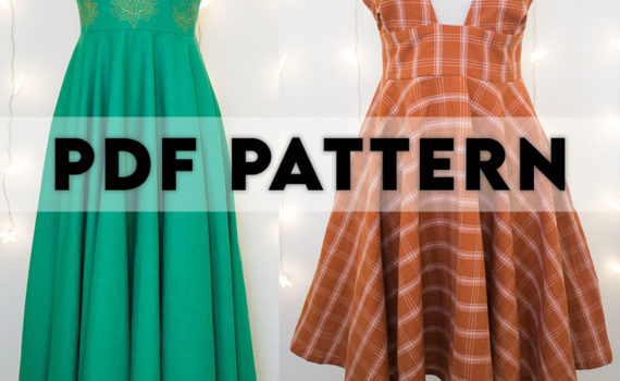 ****THIS IS NOT A PHYSICAL OBJECT!! YOU WILL RECEIVE A PDF PATTERN & TUTORIAL FILE.*** Halter Dress With Bustled Train and Pockets - PDF Pattern and Sewing Tutorial This is a pattern and tutorial, with instructions to sew your very own halter dress with pockets and a train that can be bustled. This is a basic pattern and tutorial. Absolutely perfect for everyday fashion, costumes, cosplay, and fantasy fashion projects! This listing is for a Pattern and Sewing Tutorial that includes directions to create a halter dress. This pattern fits approximately a 26” (66 cm) waist and was drafted for myself who is 5'4". The tutorial includes notes on how to adjust the size for both length and width. *Decorations are optional. I am wearing a brooch on the waistband of the dress featured for the photo shoot, and I added trim to the waistband on the striped dress. This PDF pattern can be printed on both US Letter or A4 paper. There is also a single page file you can use with a projector. In your download you will receive: + Pattern formatted for US Letter paper + Pattern formatted for A4 paper + Single page full size file for use with a projector + 12 Page Tutorial Book (with photographic instructions and suggested suppliers) Materials Needed: 4 yd (or meter) fabric (upper skirt + halter)* 4 yd (or meter) contrast fabric (lower skirt + waistband)* 2 buttons (¾ inch) 7” zipper (optional) 1 yard / meter satin ribbon (for bustle) Sewing machine Matching thread You must have Basic knowledge of sewing before trying this project. It is best if you know how to do the following: A. How to place, pin, and cut patterns out of fabric. B. How to measure using a tape measure. * C. Basic sewing using a home sewing machine. D. How to sew buttons and button holes. E. How to align straight and curved edges for sewing. F. How to gather. G. How to install a zipper (optional to close the opening at the top of the skirt in the back). Once ordered/downloaded, there are no returns, refunds, or exchanges. Download link will pop up once you complete your order. You will also receive an email containing your download link. If you do not see the email in your inbox, please check your spam folder.
